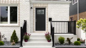 Our material options include corrosion-resistant exterior aluminum stair railings, classic iron stair railings exterior with modern protective coatings, and natural wood exterior stair railings selected for durability and beauty. Each material is carefully chosen to balance longevity, safety, and design flexibility, ensuring a suitable solution for every property. We also provide outdoor railings for steps that integrate seamlessly with various architectural styles.